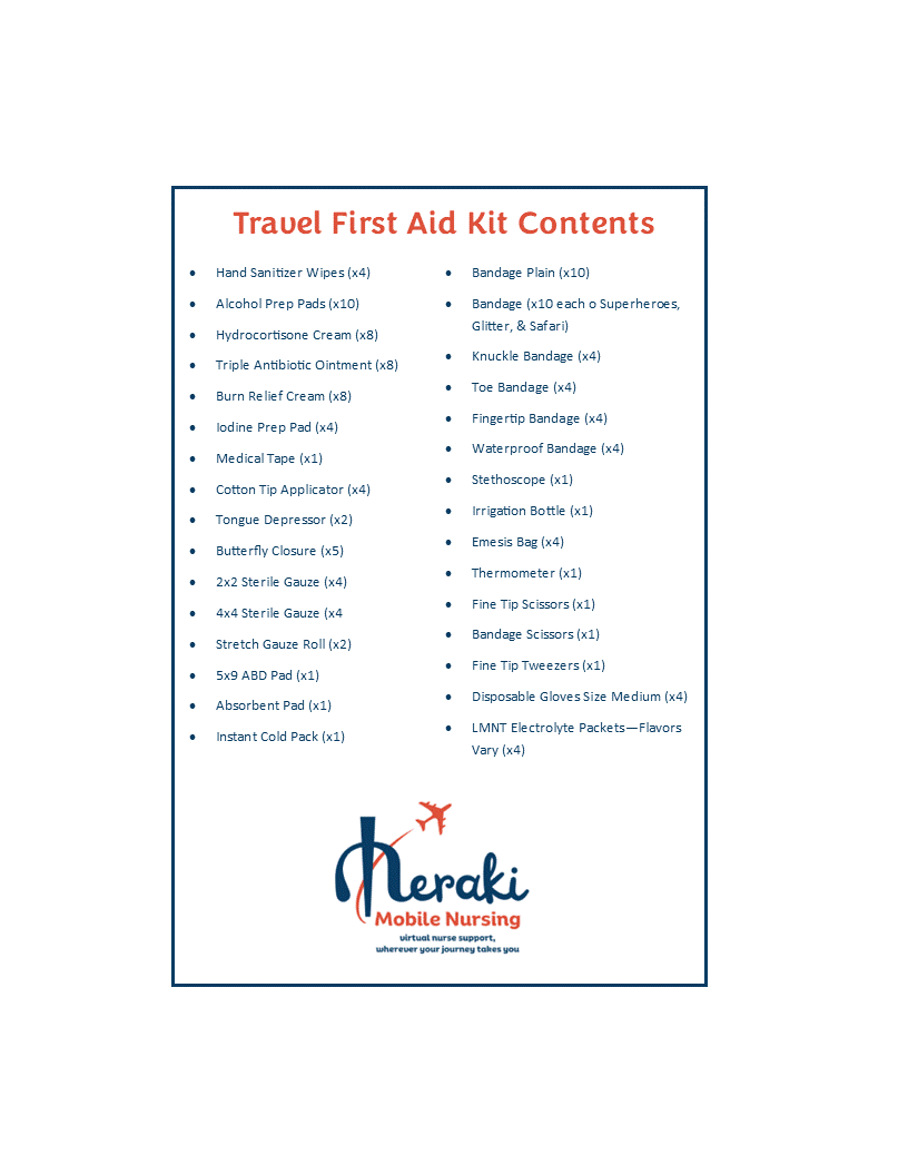 Created with travelers in mind, our Customized Travel First Aid Kit is your ultimate travel companion. Whether you’re discovering new cities, exploring the outdoors, or traveling for work, this thoughtfully curated kit ensures you’re always prepared for life’s little emergencies—wherever your journey takes you.